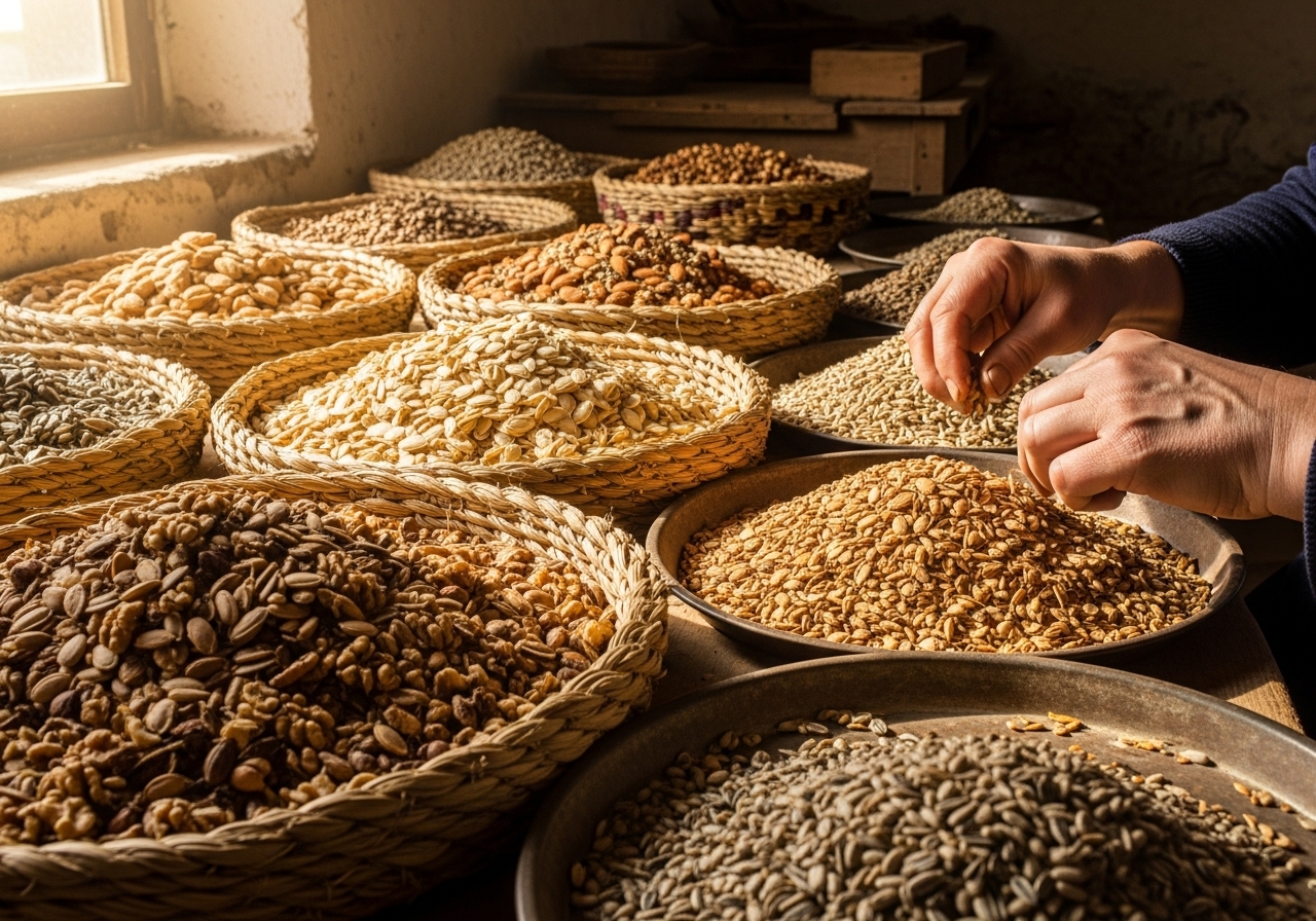Seeds and nuts go through meticulous cleaning, dehulling, and sorting for making pure oils.